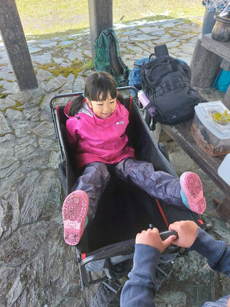 ランチの後は、みんなで森へ。木に登ったり、森を探検したり、みんなと一緒に楽しい時間を過ごしました。新しい植物を見つけたり、自分たちが森の強い戦士であることを想像したり。特にある子は、スーパーサヤジンに変身していました。